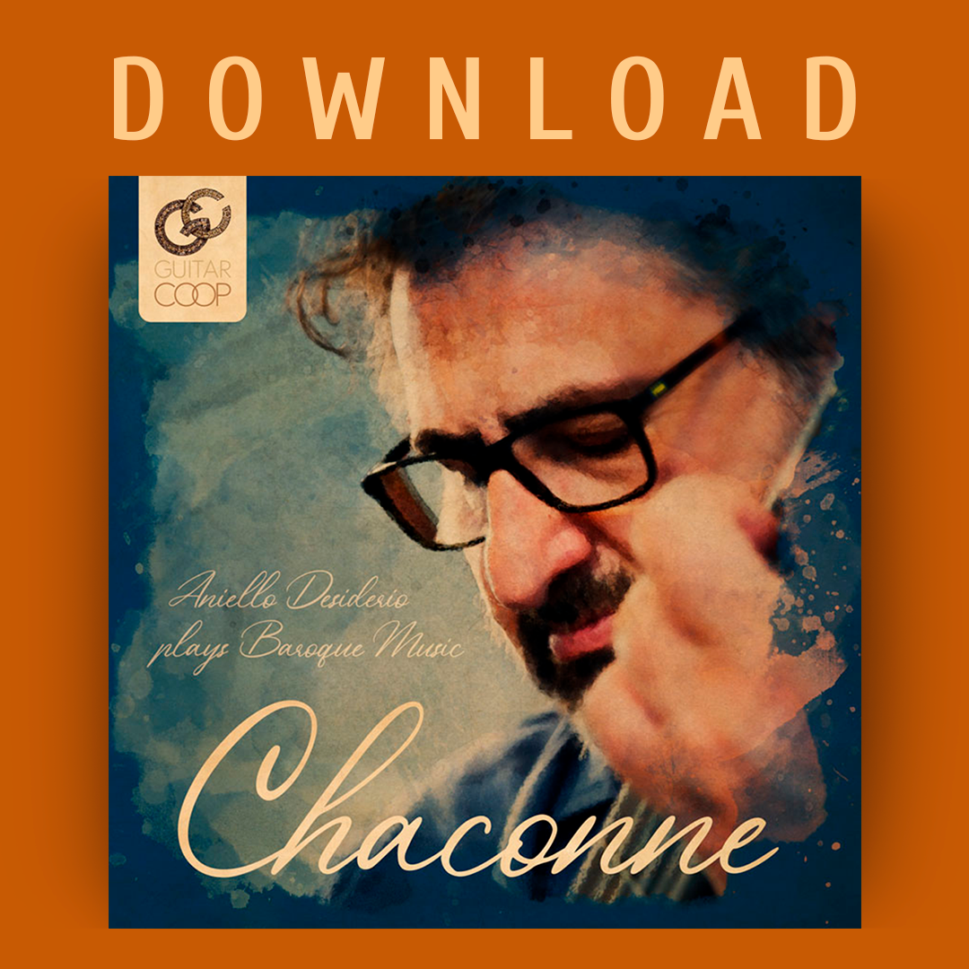 O álbum Chaconne integra o catálogo da Guitarcoop como um dos projetos dedicados à releitura do repertório histórico sob a perspectiva de grandes intérpretes do violão contemporâneo. Nesta gravação, Aniello Desiderio apresenta um programa centrado na tradição barroca, reunindo obras de Johann Sebastian Bach, Gaspar Sanz e Domenico Scarlatti.