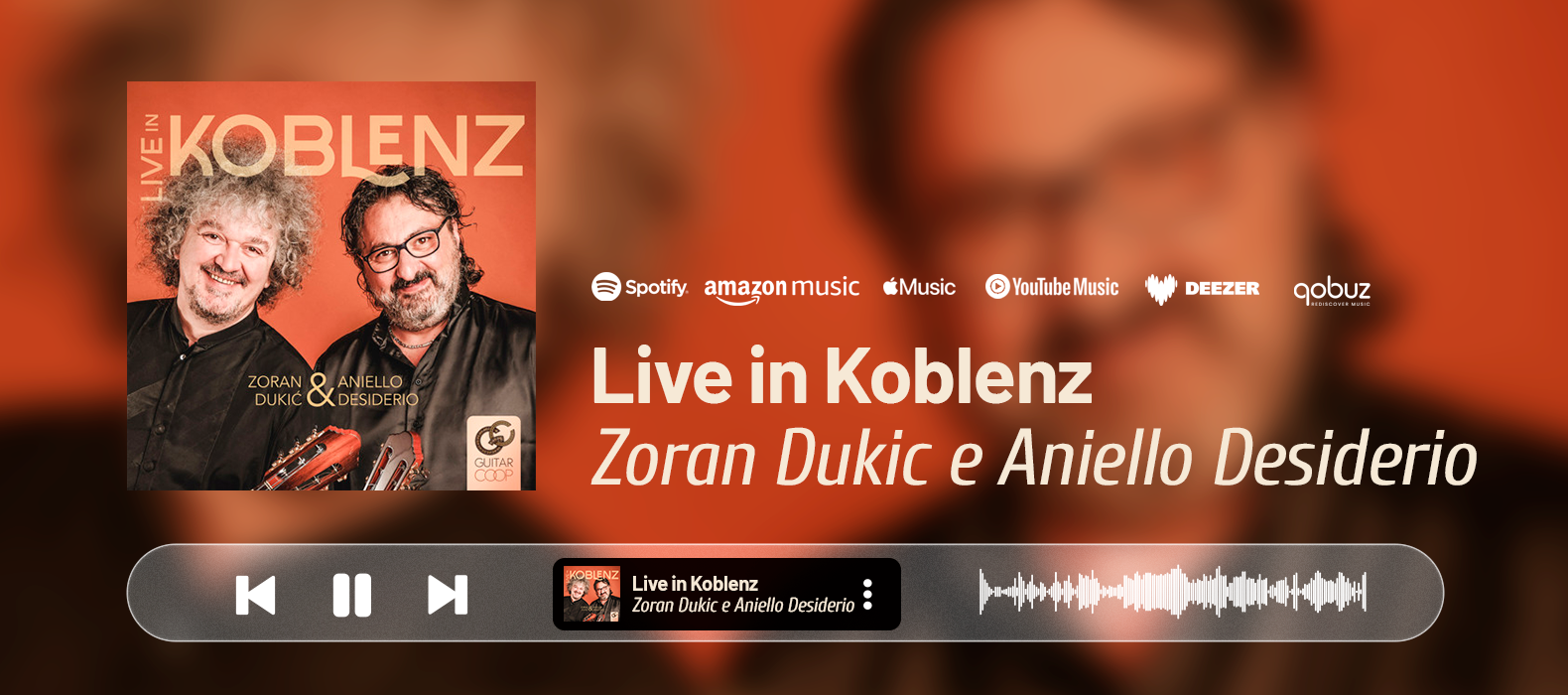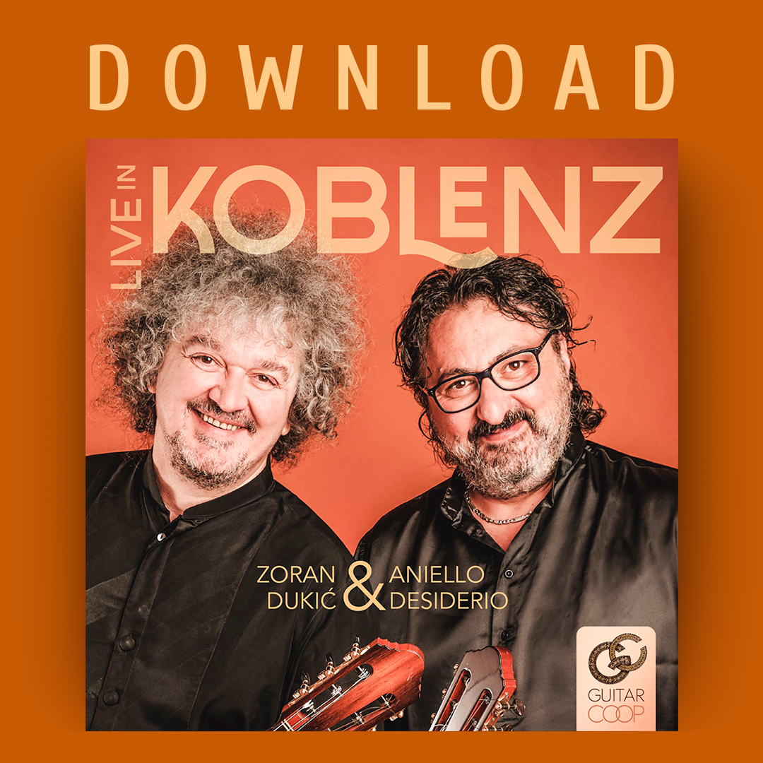 Live in Koblenz documenta o encontro artístico entre dois dos mais destacados violonistas de sua geração, Aniello Desiderio e Zoran Dukic, em recital realizado em 11 de outubro de 2020 na Kaisersaal do Kurfürstliches Schloss, Alemanha, durante a 28ª edição do Koblenz Guitar Festival & Academy.