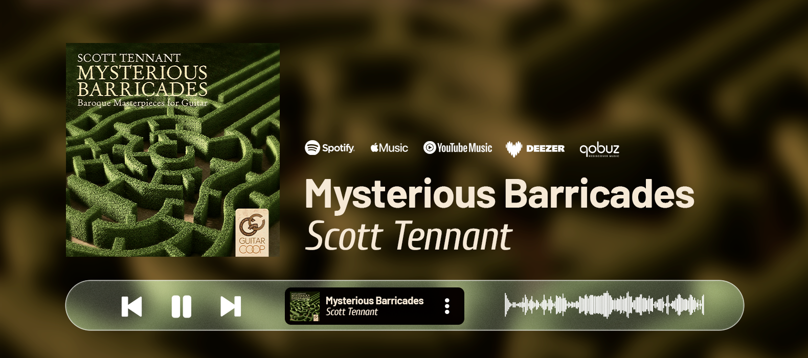 Neste álbum, Scott Tennant convida o ouvinte a uma jornada pelo universo barroco, reunindo algumas de suas obras prediletas de um dos períodos mais férteis da história da música. Mysterious Barricades apresenta uma rica diversidade de estilos composicionais, assinados por mestres que não apenas definiram a escrita musical de seu tempo, mas também foram virtuoses em seus próprios instrumentos.